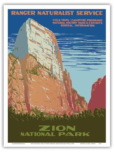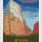 ザイオン国立公園のビンテージ旅行ポスター。GreatホワイトThrone Mountainを描いた絵。作業プロジェクト管理(WPA)による1938年の作品。印刷サイズは9″ x 12″。