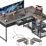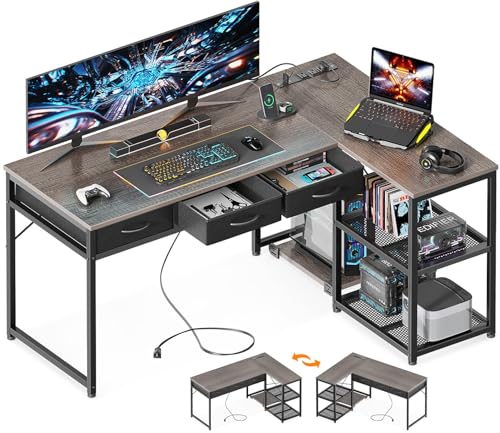 ODKゲーミングデスクは、引き出し3杯、コンセント付きのL字型デスクです。幅135cmで、棚付きの収納スペースが便利。組立簡単で在宅勤務や仕事用にも最適なグレーのデザイン。