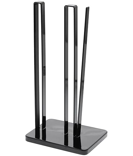 山崎実業のキッチンペーパーホルダー「タワー」は、片手で簡単に切れる便利な設計。サイズは約W15.5×D11.5×H31cmで、スタイリッシュなブラックカラーがキッチンにマッチします。