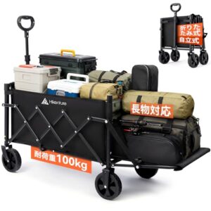 HIEKNTURE キャリーワゴン 【リアゲート付き 長物対応 容量100L 】 アウトドアワゴン ミニ 超軽量5.1kg 折り畳み式 携帯便利 キャンプ カート 1 秒収納 コンパクト 自立収納 キャンプ キャリー 高耐荷重100kg キャリーカート 自動復帰式伸縮杆 静音 車輪交換可能 多地形対応 組み立て簡単 キャンプ/ピクニック/釣り/砂浜/買い物/イベント/引越し/ゴミ出し