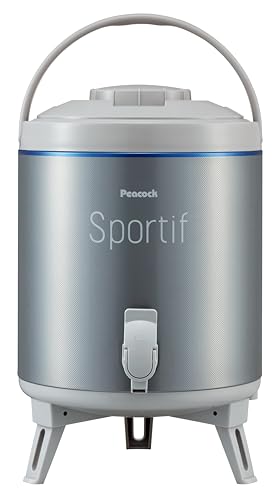 ピーコックのウォータージャグ(8.1L)は、日本製の保冷・保温機能を備え、大容量ながら軽量で使い勝手が良いです。広口設計で洗いやすく、レバー式で注ぎやすいシルバーのデザインが特徴です。
