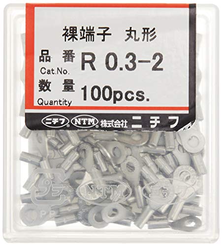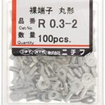 ニチフ端子工業 裸圧着端子 R形(100P) R0.32は、高品質の裸圧着端子で、R形状のため、絶縁被覆付きのケーブル接続に最適です。通常の用途に広く使用され、耐久性に優れています。