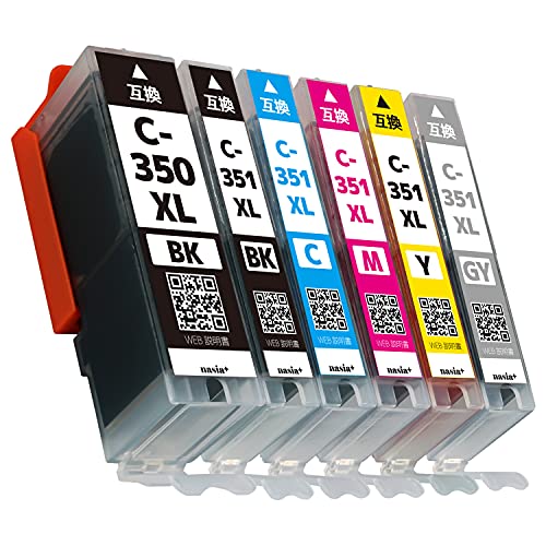 Canon用BCI-351XL/350XL互換インクカートリッジ。全色大容量の6色パック。純正インクとの併用が可能。安心の国内QR(WEB)説明書付き。