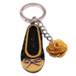 ラポールのバッグチャームは、アクリル製のバレエシューズデザインで、可愛いリボン付き。軽量でおしゃれなブラック×ゴールドのカラフルなキーホルダーです。
