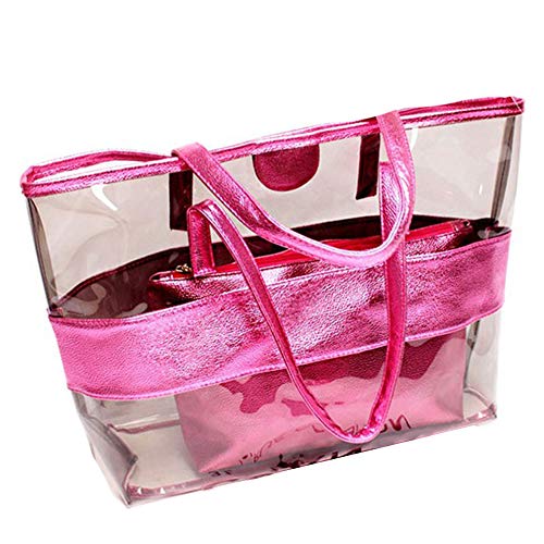 KARRESLY 2 in 1 クリアショルダーバッグ PVC 防水 トラベルバッグ ビーチ ハンドバッグ ジム スポーツ コスメ トートバッグ パース US サイズ: Free size カラー: ピンクの高価買取ITEM
