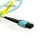 Karono MPO-MPO光ファイバーパッチケーブル、タイプB OM3 33フィート(10M)。8コアMTP互換、QSFP+トランシーバー、FTTH、EPON用、アクア色。