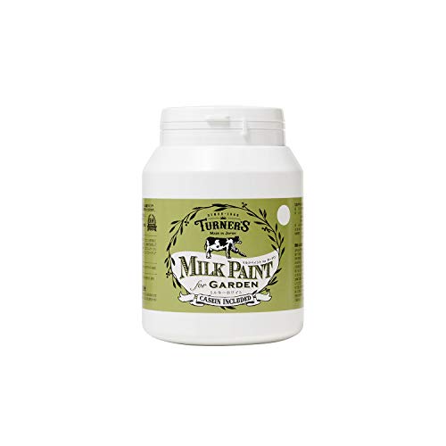 ターナー色彩のアクリル絵具、ミルクペイントforガーデンは、しっかりしたミルキーホワイト色で450ml入り。屋外やインテリアに最適で、塗りやすく発色も良い。水性で安全性も高い。