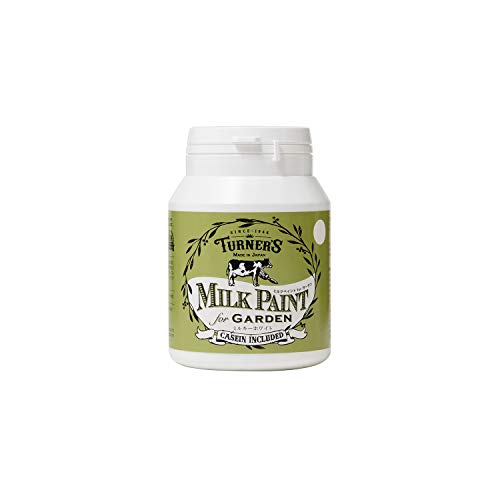 ターナー色彩のミルクペイントはアクリル水性の塗料で、ガーデン用ミルキーホワイト(MKG20301)は200mlの容量。自然な風合いと優れた密着性が特徴で、外装や木材に最適です。安全で扱いやすく、DIY初心者にもおすすめです。