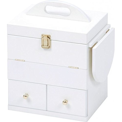 この木製コスメボックスはバタフライ式ミニテーブル付きで、白(ホワイト)色です。メイクやジュエリー収納に最適で、インテリアとしてもおしゃれなデザインです。