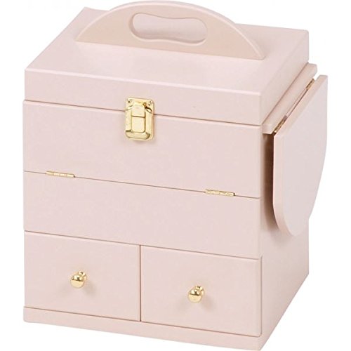 木製のコスメボックスで、バタフライ式のミニテーブル付き。ピンク色で可愛らしく、収納性能が高いメイクボックス・ジュエリーボックス。簡素パッケージ品、代引不可。