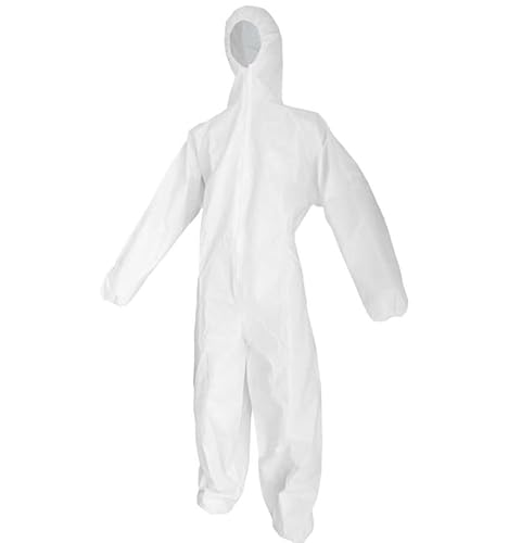 スマイルワークの不織布つなぎ服(Lサイズ)は、身長165cm~175cmに適し、使い捨ての白衣として作業や清掃、防護に最適です。フード付きで、塗装や介護、食品工場など幅広く活用できます。