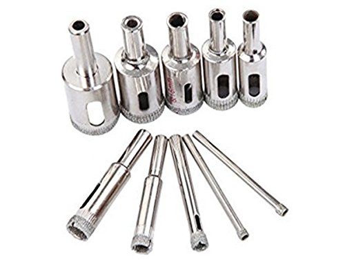 D-drempatingのダイヤモンドコアドリル10本セット。サイズは3mmから30mmまでで、混合サイズ(4mm-20mm)。ガラス、大理石、レンガ、タイルへの穴あけと切断に最適。