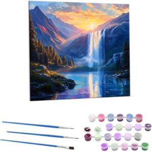 滝の風景 数字油絵 Paint by Numbers 塗り絵 キット 大人 数字ぬりえ 大人用数字塗り絵キャンバスクラフト 数字 キャンバスアート ブラシとアクリル絵の具が入, オフィス インテリア リビング装飾, 女性へのギフト 60x60cm (フレームレス) h-686