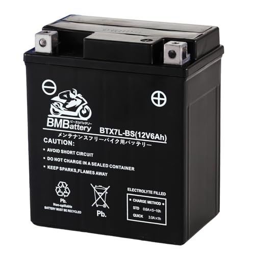 BMBatteryのBTX7L-BSは液入り充電済みバイク用バッテリーです。YTX7L-BS、GTX7L-BS、FTX7L-BS、KTX7L-BSと互換があります。高い信頼性と安定した性能を提供します。