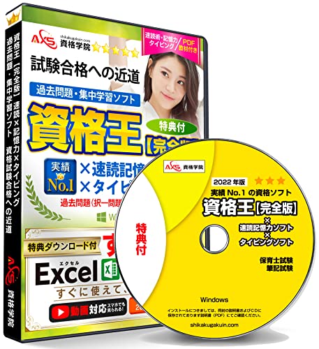 保育士試験の筆記試験対策に特化した速読術、記憶力、タイピング訓練を含む過去問集中学習ソフトです。特典付きで効率的に学べる教材を提供。