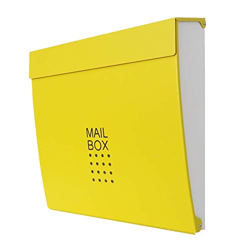 北欧風の大型壁掛けメールボックス。鍵付きで安全に郵便物を管理。マグネット付きで設置も簡単。明るい黄色が目を引くデザインで、シンプルながらおしゃれな外観が特長。