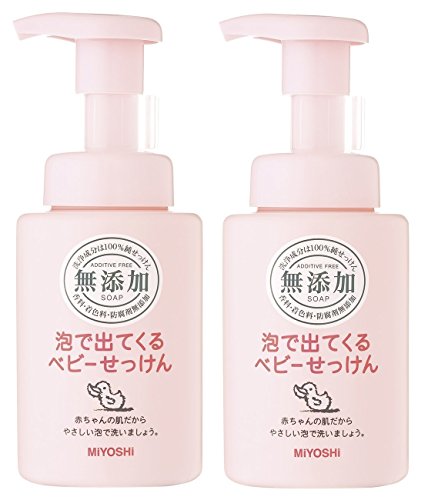 ミヨシ石鹸の無添加泡で出てくるベビーせっけん250mlの2個セット。赤ちゃんの肌にも優しい無添加処方で、泡タイプなので使いやすく、優しく洗い上げます。無香料、無着色です。