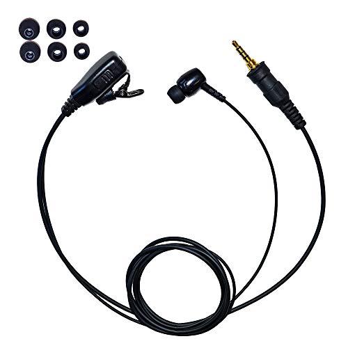 BLUE CENTURYの特定小電力トランシーバー対応イヤホンマイクです。3.5mm防水仕様でカナル型(W019H)を使用。予備イヤーパッド付属。1ピンねじ込みプラグ(VOX非対応)。