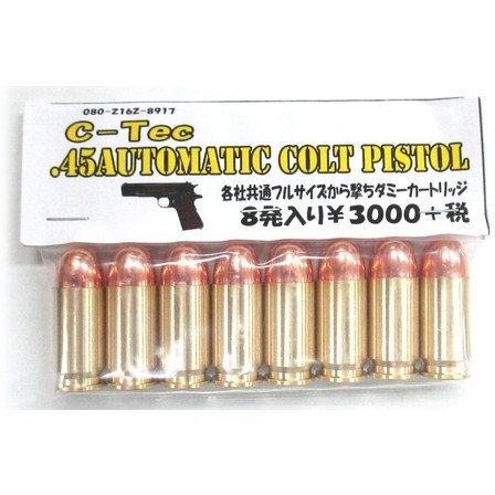 C-Tec 45ACP 各社共通 フルサイズ 空撃ちダミーカートは、8発入りで、エアガンやトレーニング用に最適です。リアルな感じのあるデザインで、安全に練習することができます。
