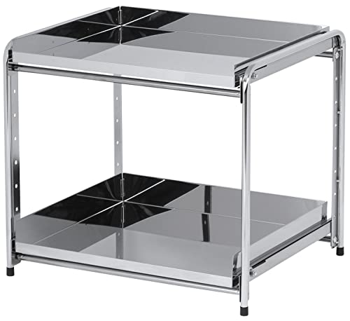 川口工器のシンク下スライドラックは幅50cmで、2段のステンレス棚を持つ日本製の製品です。燕三条で製造され、高い耐久性と機能性を兼ね備えています。キッチンの整理整頓に最適です。