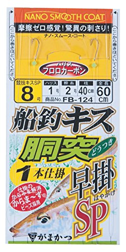 がまかつの船釣キス胴突1本、早掛SP FB124 8-1は、耐久性に優れた素材で作られています。キス釣りに最適な繊細な仕掛けで、初心者から上級者まで幅広く使用可能です。