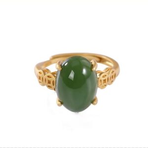 天然風水グリーン翡翠の女性用本物のヨガオープンエンドリングオーバルS925シルバーゴールドメッキ開口部調節可能なリング内径17-19cm(0.66-0.75インチ)すべての人に適しています
