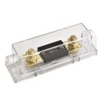 Heschen(ハドソン)の150A ANLヒューズ付きヒューズホルダーは、自動車やバイクのオーディオサブウーファー用品です。金色のデザインで、1個入り。信頼性の高い保護機能を提供します。