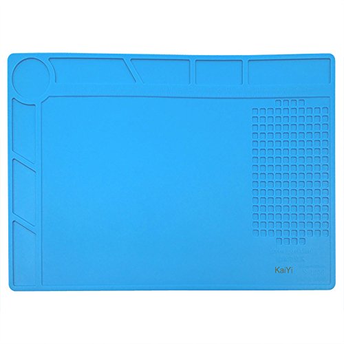 作業マットは、サイズ34x23cmで、500℃の高温や熱風に耐え、絶縁・断熱効果があります。耐切創性にも優れ、電子機器やパソコン、携帯の分解・修理に適しています。20cm目盛り付きで便利です。