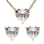 PLUSTERのネックレスとピアスセットは、キュービックジルコニアとラインストーンを使用したシルバー925製。ゴールドのハートデザインが特徴で、誕生日や母の日のギフトに最適な人気ジュエリーです。