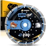 アンビル UBS 13P ダイヤモンドカッティングディスクは、直径230mm、厚さ22.2mmで、鉄筋コンクリートや石材の切断に適しています。セグメント高さ15mmの焼結タイプでDurabilityに優れています。