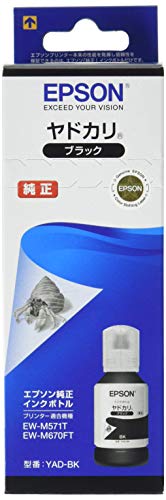 エプソン純正インクボトルヤドカリYAD-BKは、ブラックインク対応の高品質ボトルです。幅広い対応機種に優れた印刷品質を提供し、鮮明な文字や画像の印刷が可能です。大容量設計でコストパフォーマンスにも優れています。