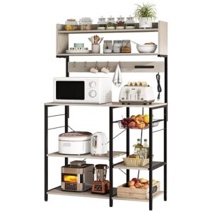 LYNCOHOME 幅90ワイドレンジラック 計4口 コンセント付き USBポート付き レンジ台 レンジボード 食器棚 キッチンラック キッチン収納 大型レンジ対応 収納バスケット付き 網かご付き(グレージュ 北欧風 おしゃれ)
