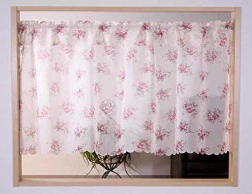 薄地ボイル生地にバラ柄のプリント小窓カフェカーテン145×75cmガーデンローズカフェ14408naruの高価買取