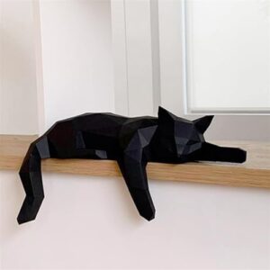 猫の紙彫刻、プレカットDIYペーパークラフトキット、手作り野生動物置物、3Dペーパーアート、手作りワイド動物置物、カラー、低ポリホームデコレーション、すべてのアクセサリー付属 (Color : Black)