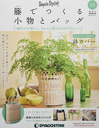 籐でつくる小物とバッグ 11号は、籐を使った手作りの小物やバッグを作るための分冊百科です。キットや工具が付いており、初心者でも楽しめる内容になっています。毎号異なるデザインが楽しめるのが魅力です。