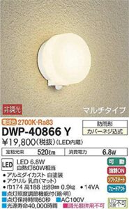 大光電機 DAIKO LED人感センサー付アウトドアライト LED内蔵 人感センサー マルチタイプ LED 6.8W 電球色 2700K 防雨形 電気工事必要 ホワイト DWP-40866Y