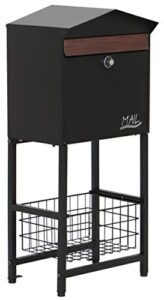 ヤマソロ かご付きポスト モイル Moil ポスト 郵便受け メールボックス 鍵付き 73-792 (ブラック)