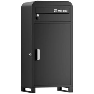 【複数投函可能/ポスト一体型/大容量】 VARNIC 宅配ボックス 組み立て不要 屋外 大容量 宅配BOX 防水・防錆 据え置きベース・マグネットシート付き 郵便受け 盗難防止 両開扉 戸建て用 個人宅 (ブラック)