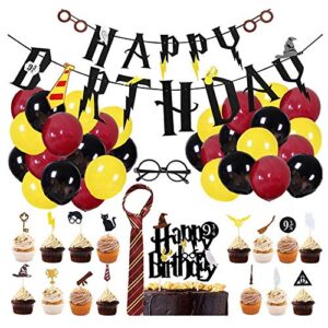 ハリーポッター 誕生日 飾り付け パーティー セット マジック 魔法 カッコイイ 面白い 可愛い 3 ユニーク 子供 男の子 ブラック レッド イエロー harry potter happy birthday ガーランド ネクタイ メガネ ケーキトッパー バルーン 風船 49枚セット