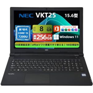【整備済み品】NEC ノートパソコン VersaPro VKT25 15.6型 windows 11&office 2019 搭載 ノートPC/第7世代i5-7200U@2.5GHz/メモリ 8GB/SSD 256GB/DVDドライブ/無線WIFI/USB 3.0/VGA/HDMI対応/テンキー付