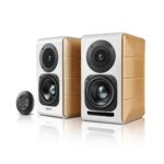 Edifier S880DBは88W RMS出力のアクティブブックシェルフスピーカーです。Bluetooth 5.1、デュアルRCA、光、同軸、USB接続に対応し、ハイレゾオーディオ認定。チタン製ドームツイーターとアルミダイアフラム搭載。リモコン付きです。