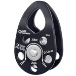 GM CLIMBINGの30kNマイクロプーリーはUIAA認証済みで、12mmロープに適合します。自己潤滑ブッシングが特徴で、登山やアーボリスト、レスキュー用に最適。ブラックカラー。