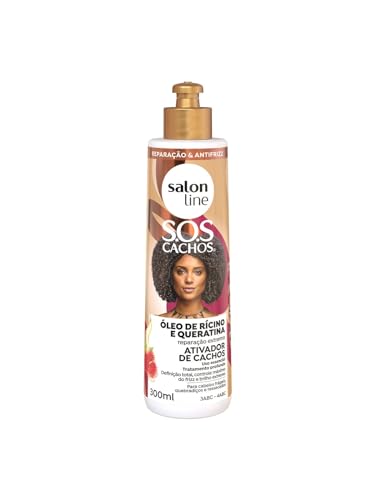 Salon Line S.O.S Cachos Ricino e Queratinaは、300mlのカーリーヘアスタイリングクリームです。リシノールオイルとケラチン配合で、しっかりしたカールを保ちながら、しなやかさと艶を与え、ダメージヘアを補修します。