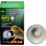 ゼンスイ ストロングシリーズ バスキングランプ 40Wは、爬虫類や両生類用に設計された高耐久二重ガラス構造のスポットライトです。効率的な加熱で、動物に必要な紫外線を提供します。