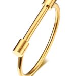 HUANIAN ステンレススチール製のD型バー スクリューシャックルは、ユニセックスデザインのファッションバングルです。洗練されたスタイルで、カジュアルからフォーマルまで幅広く使えます。