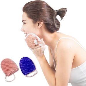 ボディ フェイス 泡立浴用タオル 角質除去ネット ハニカムウォッシャー アフリカンバスタオル シャワーネット 背中洗い スキンケア 両面 ボディ洗い フェイス洗い (ハニカムウォッシャー(指先タイプ大)ブルー)