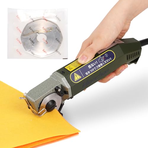 Hanchen 電動カッターは、厚さ10mmまで切断可能な手持ち式機器です。布、レザー、紙などを簡単に裁断でき、Φ50mmの替刃が付属。家庭や縫製屋向けで、日本語説明書と2.8mの電源コード付き。