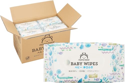 Mama Bear(ママベアー)の手口ふきは、純水99%使用のベビー手口ふきで、60枚入りが20個(合計1200枚)のケース品です。日本製でパラベンフリー、肌に優しいウォッシュタオルです。