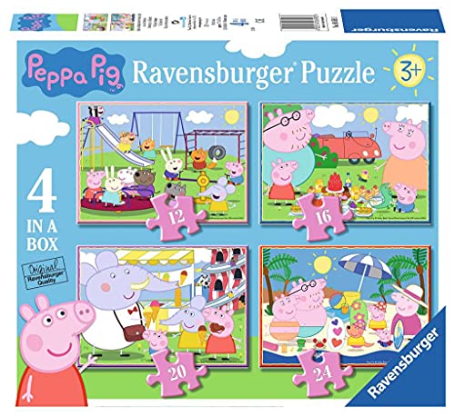 Ravensburgerペッパ豚ジグソーパズルは、12、16、20、24ピースの4箱セットで、子供の成長に合わせた難易度が選べます。色鮮やかなデザインで、楽しい時間を提供します。