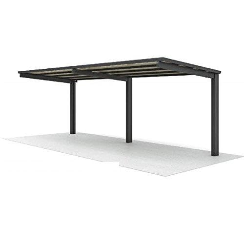 四国化成のサイクルポートVF-Rオープンタイプは、基本セットの連棟用で積雪20cm対応。屋根材はアルミ押出形材を使用し、カラーはブラックつや消しとステンカラーの2色展開です。